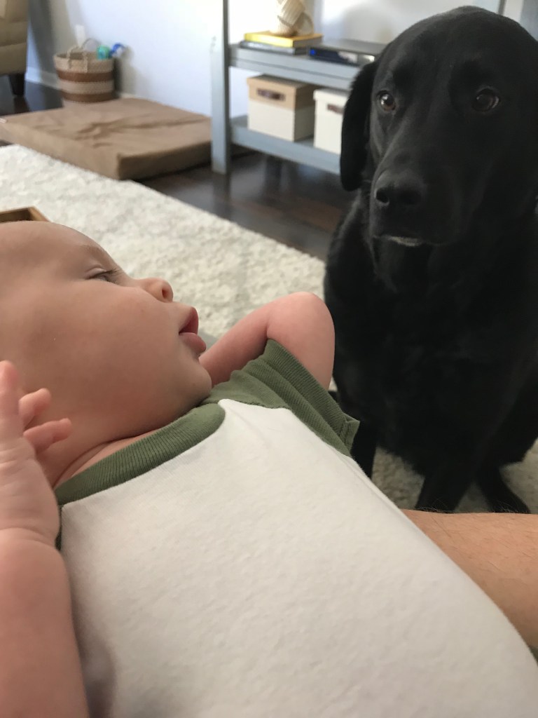 In my last post about Rogue, I think I wrote about how we adopted him and how he’s evolved with our family to welcome the two of you. Reagan, he didn’t know what to think when you came along, and I think part of him wanted to still be the “only child.” But he eventually understood that you were a part of things, and became protective over you the way he still does for your mom.