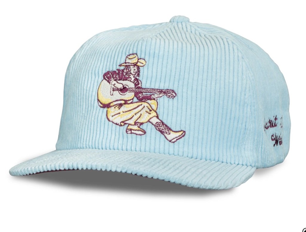 This one has a lot going for it. When I think of Nashville, I think of fun, a little bit crazy, and a little bit cool. I think this hat checks all three boxes. The image of Wile E. Cayote riding a rocket says I’m old enough to know what’s going on. It says I come from a simpler time, but I’m also modern enough to wear it ironically. There is a bit of danger going on here, but the Bob Dylan lyric also plays in Music City without being too “fake country.” The hat says “send it” but also says, “you’re going to be OK tomorrow.”